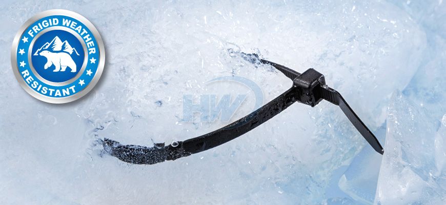 Frostbeständige Kabelbinder, verbesserte Flexibilität und Robustheit für Anwendungen bei -60℃ Kälte. Schlagfest und UV-beständig für den Innen- und Außenbereich. Entspricht den UL-Anforderungen. Anwendbar für Kabelbündelung in arktischen/polaren Gebieten, extremen Temperaturbereichen und gefrorenen Lagereinrichtungen, Logistikverteilung bei niedrigen Temperaturen usw.