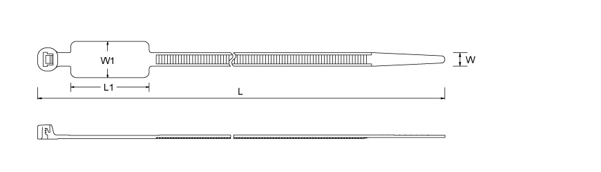 Identifikationskabelbinder, Standardquerschnitt, Länge 10,6" (270 mm), Zugfestigkeit 50 lbf, Markierungsgebiet 0,51x2,14 Zoll (13,0x54,4 mm).