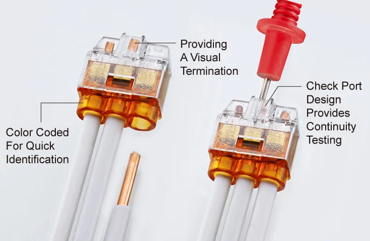 - Werkzeugfrei! Kein Verdrehen! Einstecken von Drähten spart Installationszeit.