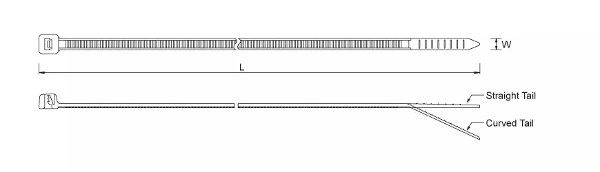 50lbf (22.6kgf) tensile strength. Also known as Zip Tie, Tie Wrap, Hose Tie, Zap Strap, Wire Tie, Locking Strap, Cable Strap, Plenum Rated Cable Tie, Air Handling Cable Ties, Nylon Cable Tie