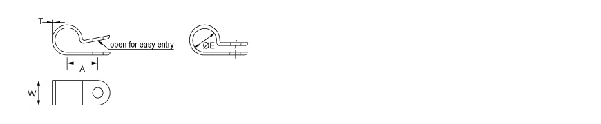 Abrazaderas de cable, P-Clips, abrazaderas de cable de diámetro fijo, abrazaderas de cable de borde liso, abrazaderas de cable - montaje con tornillo, abrazaderas de nylon, abrazaderas de cable de nylon