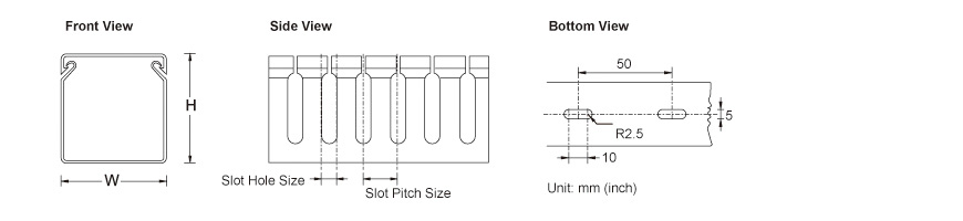 0.98"x0.98"(25x25mm) Conductos de cableado ranurados - Tipo GW, orificio de ranura de 8 mm, volumen de cableado de 10-25 piezas