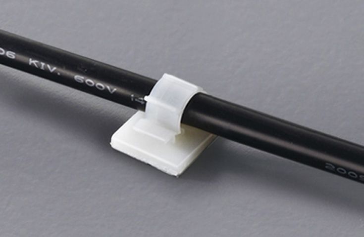 セルフアドヒーシブケーブルクランプは、適切に清潔で滑らかでグリースフリーな表面に適用されると、軽量のワイヤーバンドルをサポートするために設計されています。重いサポートのためには、ネジ用の取り付け穴が用意されています。適用するには、バックペーパーを剥がしてマウントを表面に貼り付け、その後、ケーブルタイを挿入してワイヤーバンドルを固定します。