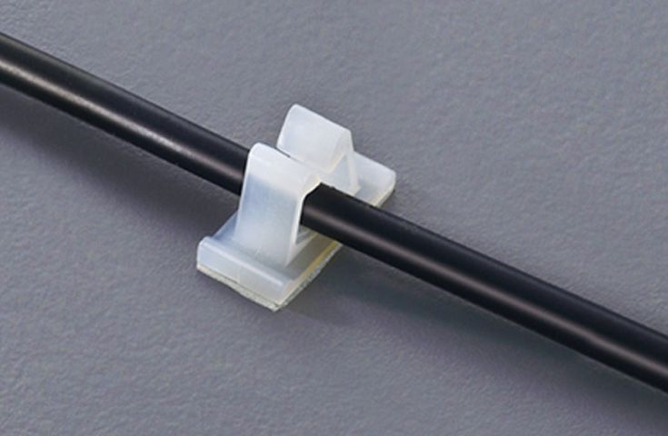 セルフアドヒーシブケーブルクランプは、適切に清潔で滑らかでグリースフリーな表面に適用されると、軽量のワイヤーバンドルをサポートするために設計されています。重いサポートのためには、ネジ用の取り付け穴が用意されています。適用するには、バックペーパーを剥がしてマウントを表面に貼り付け、その後、ケーブルタイを挿入してワイヤーバンドルを固定します。