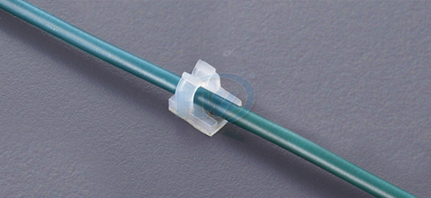 自己粘着式ケーブルクランプは、清潔で滑らかで油分のない表面に適切に取り付けることで、軽量のワイヤーバンドルを支えるように設計されています。重い支持が必要な場合は、ネジ用の取り付け穴が用意されています。取り付けるには、裏紙を剥がして表面に取り付け、その後、ケーブルタイを挿入してワイヤーバンドルを固定します。