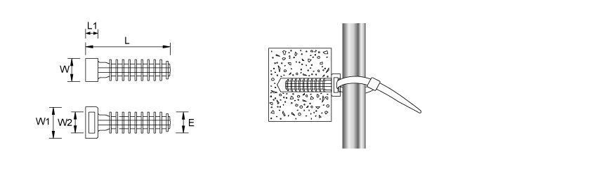 石材用ケーブルタイマウント、最大タイ幅0.35"(9mm)。