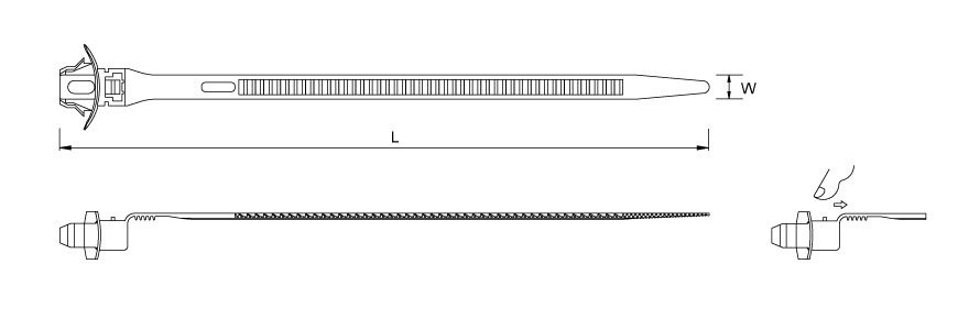 - 各种类型插鞘式束带,供您选择– 自锁式带翼的头部设计,自锁式无翼的头部设计,自锁式带盘的头部设计,可退式带翼的头部设计,可退式无翼的头部设计和可退式带盘的头部设计