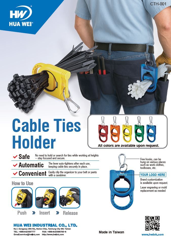 華偉實業股份有限公司是台灣一家專業在設計和製造束帶、配線器材的製造服務商. 成立於西元1976年並擁有超過45年的Cable ties, Plastic cable ties, stainless steel cable ties, cable markers, security seal, fasteners, cable clips, cable clamps, tie mounts, cable tie accessories, expansion anchors ,PCB supports and plastic screws, cable protection, wrapping bands, tarpaulins, wiring ducts, bushing, conduits and fittings, wire terminations, wire connectors, end-cord ferrules, terminals, application tools, cable tie guns, crimping tools, wiring duct cutter, OEM & ODM service.製造經驗, 華偉總是可以達到客戶各種品質的要求.