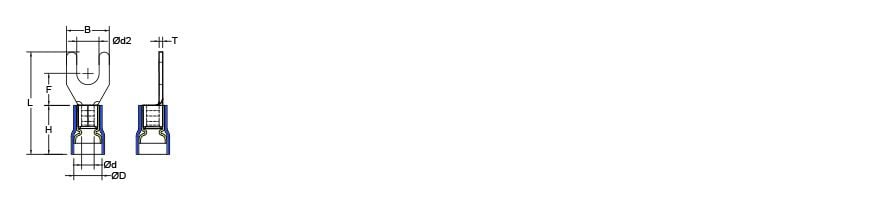 尼龍絕緣Y型端子(易進式銅管), 適用線徑 0.5-1.5 mm², 適用螺絲尺寸 M5