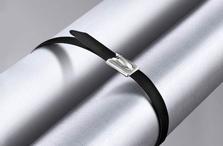 鋼珠自鎖式不銹鋼帶獨特的自鎖機制,方便快速的進行安裝,安裝省力。有光身和有塗層兩種產品可供選擇;光身不鏽鋼帶是適用於極端環境溫度,塗層不鏽鋼帶為電纜和管道提供良好的絕緣和保護。